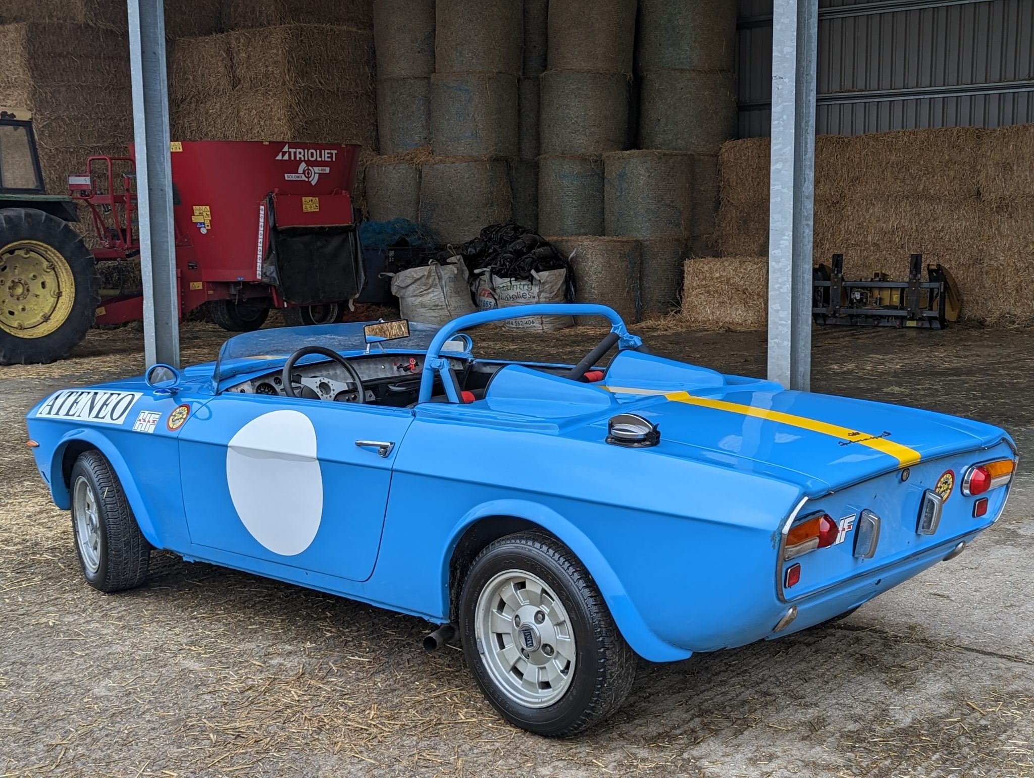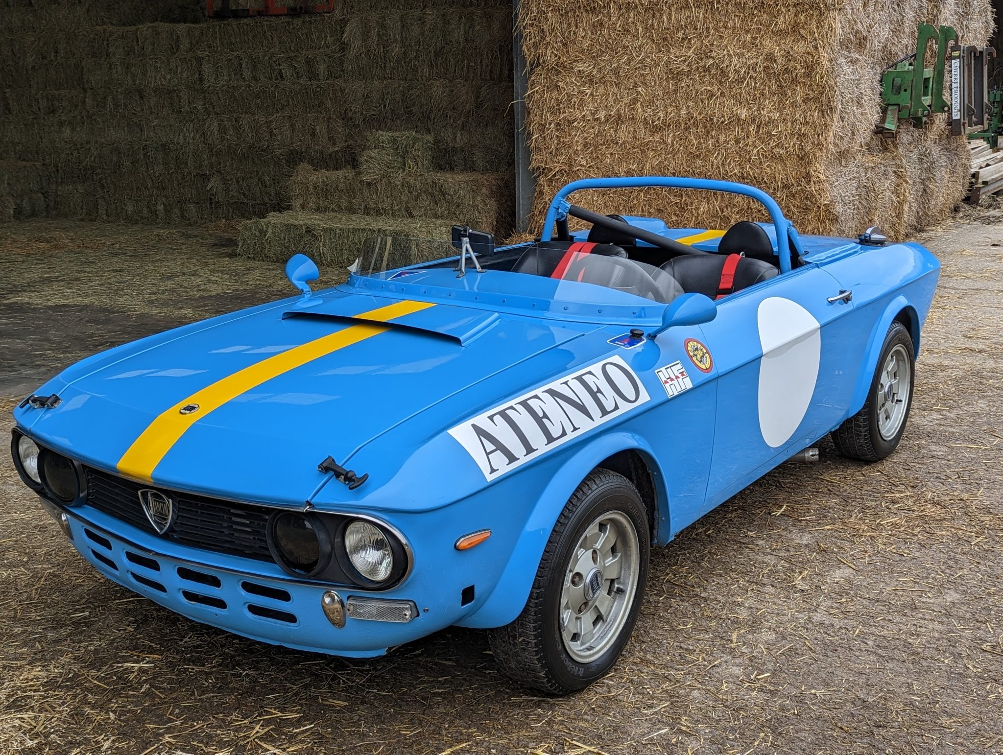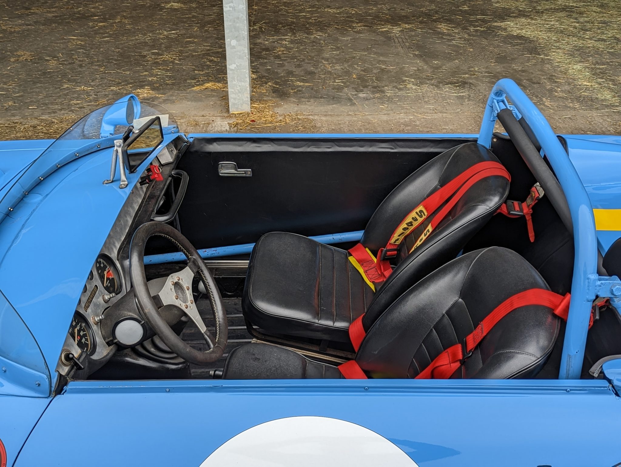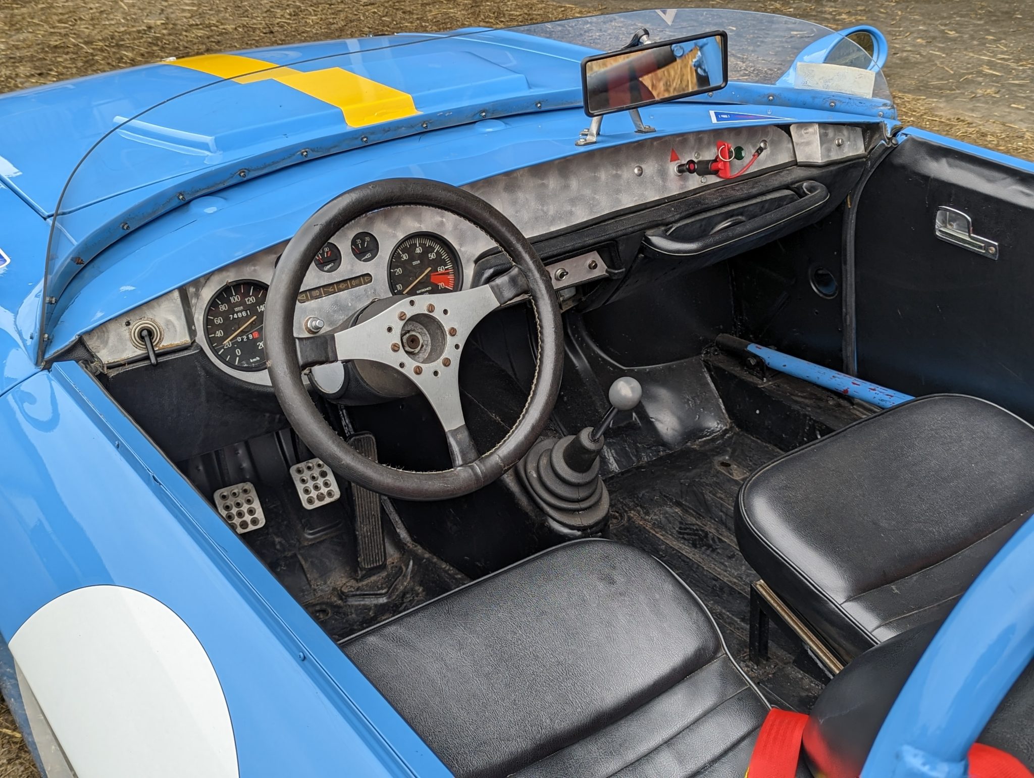 harnesses, a Fusina three-spoke steering wheel, a turned aluminium dash, simplified door trim and