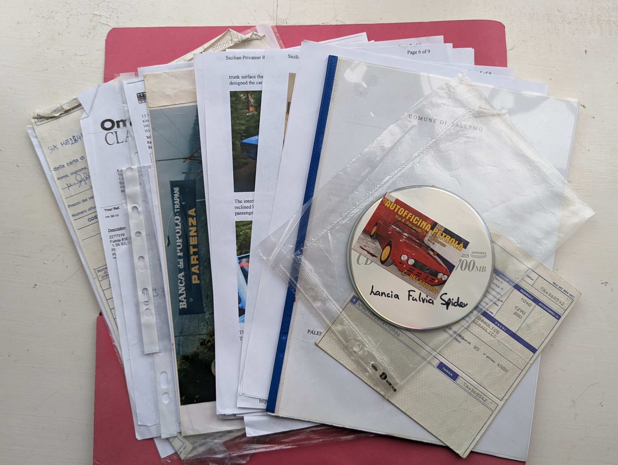 Accompanying the history file are the original registration certificate, CSAI and ACI paperwork and a